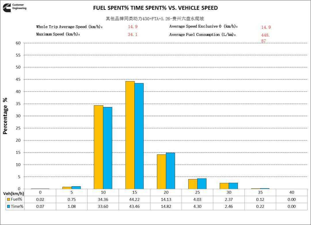 数据分析结果显示:配置福康X12动力的欧曼自卸车辆经济性在全程运行和爬坡运行两个工况均优于其他车辆。